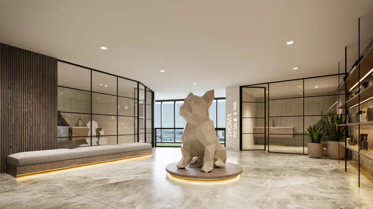 Shoma Bay consta de un edificio de 24 pisos con 333 unidades de condominios donde el diseño fusiona de manera impecable una estética art déco clásica con una fachada moderna, al tiempo que incorpora comodidades orientadas a la comunidad como un jardín zen, sala de entrega de alimentos, bodega de vinos, salón de cigarros y otras características dinámicas.