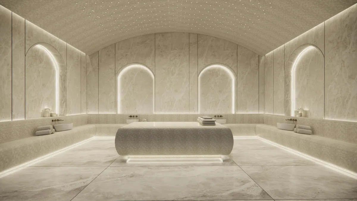 Spa exclusivo para residentes con Hammam, sauna seca y sala de vapor.